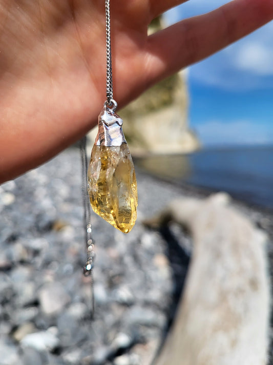 Citrin rå halskæde - sølvbelagt