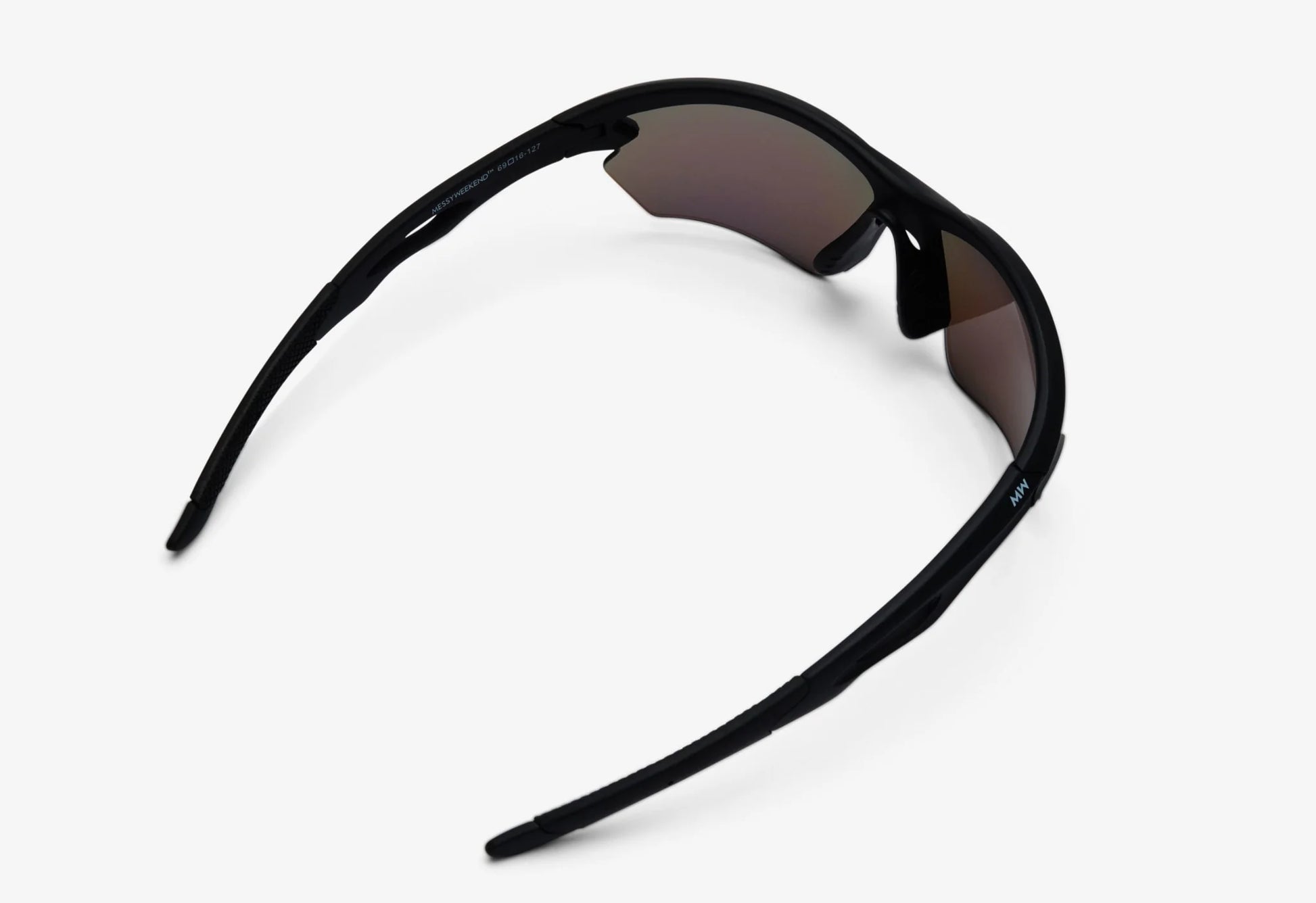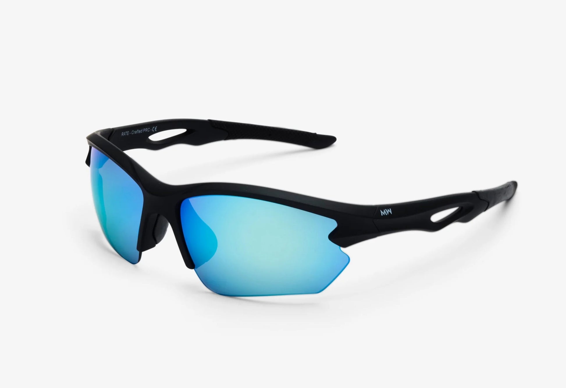 RATE: sporty meets 90s retro cool! Ideal for running, hiking, cycling – yes, even looking cool while enjoying a glass of natural wine… The sunglasses are made of TR90 and can therefore withstand most things. The PC lenses provide full UV400 (UVA+UVB) protection.