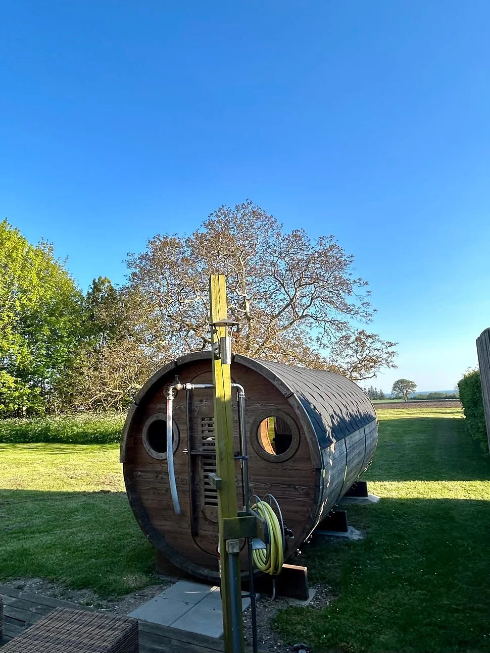 Vores base for weekenden ligger perfekt i landskabet mellem høje Møn, Klintholm Havn og Møns Klint. Yoga nydes i haven - med udsigt til det baltiske hav og det bakkede landskab ud mod Møns Klint. Vi har vores helt egne sauna og ude bruser, og nyder den gode udsigt så meget vi kan. Det perfekte sted til afslapning, SUP og Yoga. Huset ligger få hundre meter fra Klintholm Havn og 5 minutters kørsel fra Møns Klint.