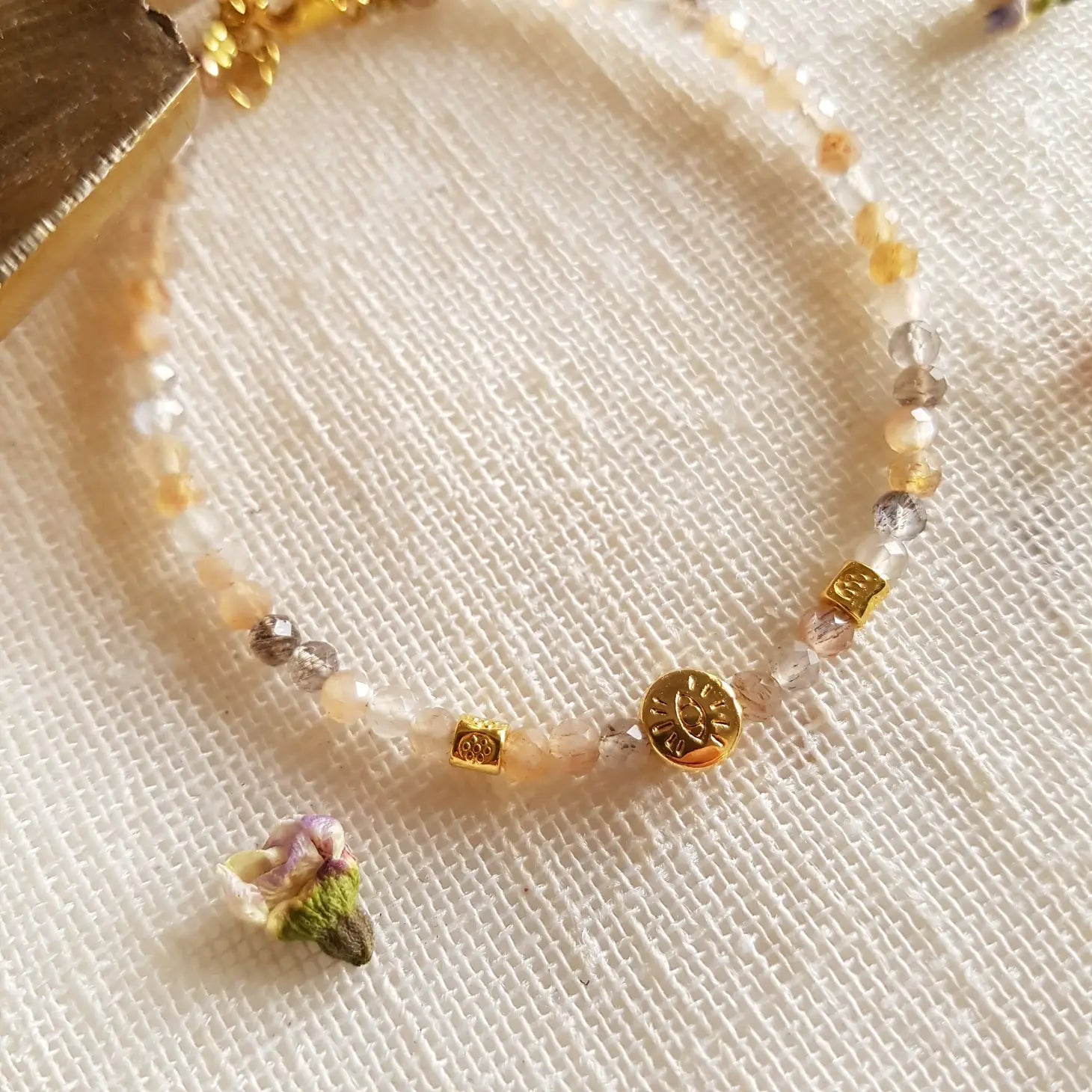 Armbånd med 2,5 mm med orange månesten og forgyldt øje. Simpel og yndig - perfekt sammen med flere armbånd.